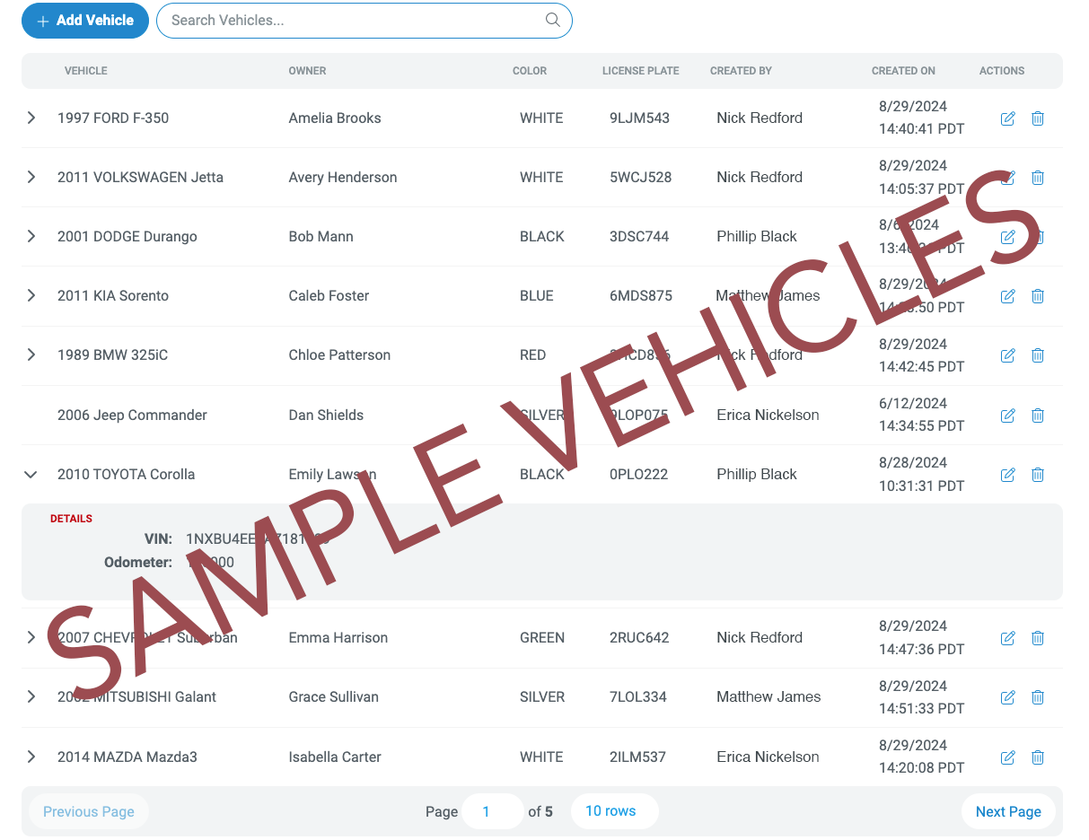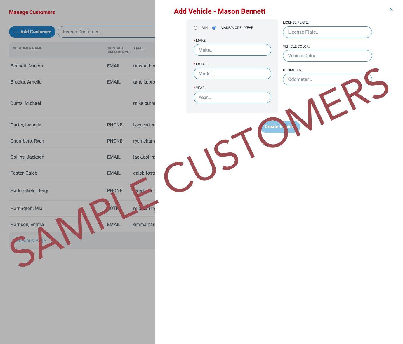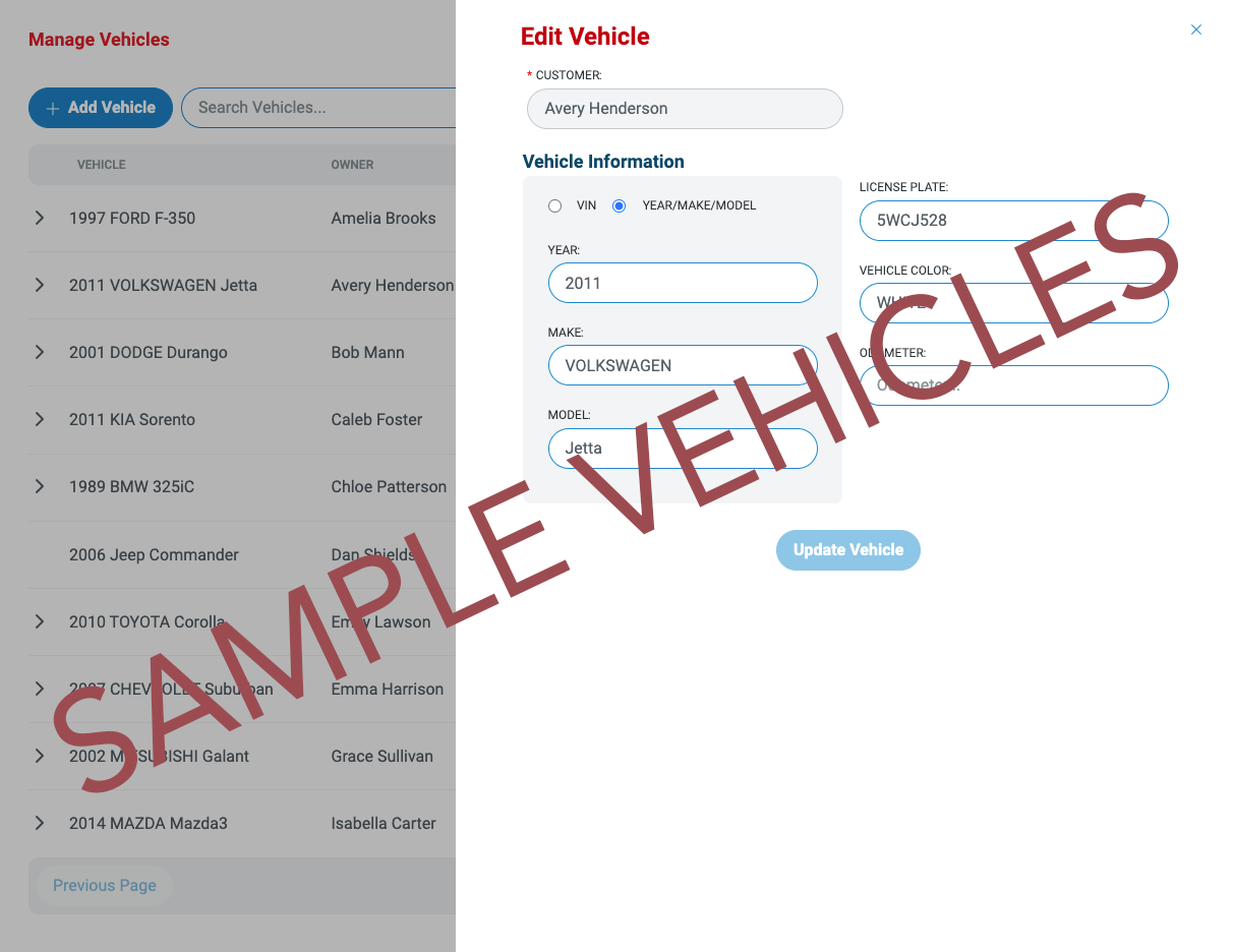- + Edit information regarding vehicles that have been serviced by your shop.
