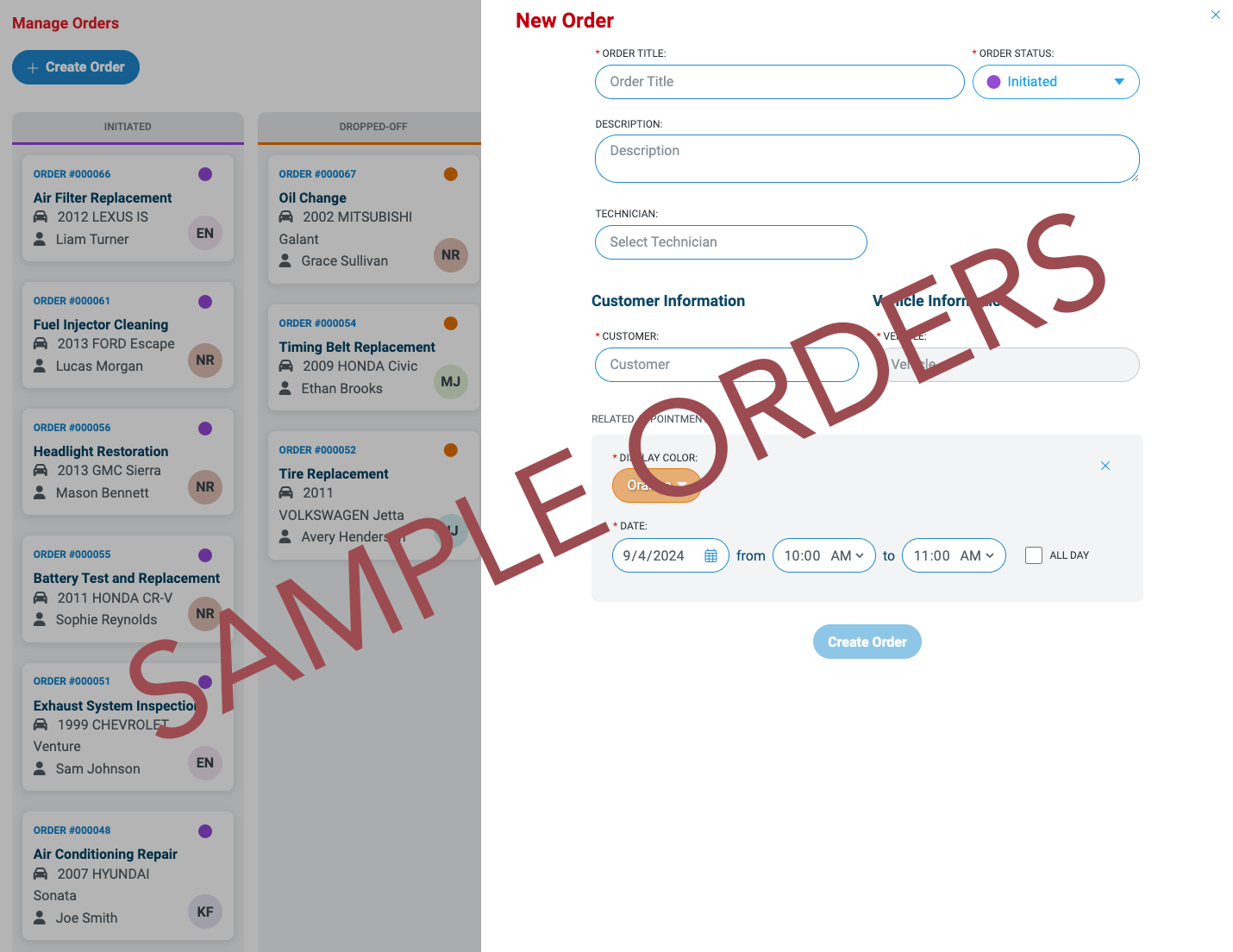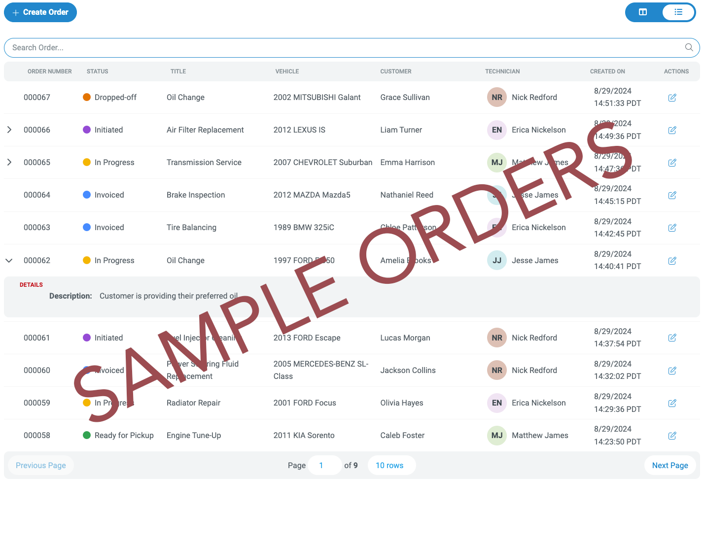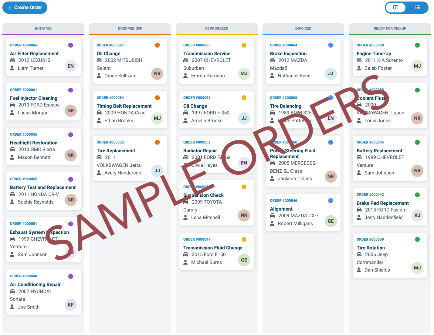 - + All your service orders at a glance, giving you a bird's-eye perspective of your shop's operations.